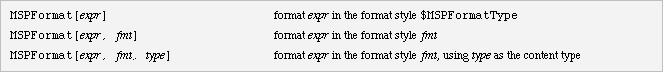 $MSPFormatType is the default format type used by MSPFormat. The default value is OutputForm.