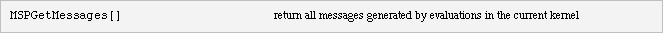 MSPGetMessages gives a way to obtain any messages that have been generated by evaluations in the current kernel. It returns a list of strings, where each string contains the formatted contents of the message.