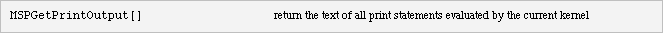 This function cannot be demonstrated in a normal evaluation; it must be part of a running server. The example Messages.jsp demonstrates the use of MSPGetPrintOutput.
