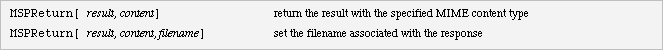This topic is discussed further in the Returning General Content section. You should remember that the result of MSPURLStore can be embedded in other formatting functions as described in the section MSP Functions Returning Images.