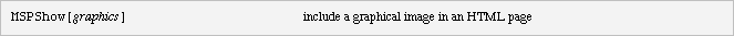 MSPShow is the main way to include graphical results from Mathematica for inclusion in an HTML page. A further discussion on formatting mathematics and graphics is given in the section on Displaying Mathematics and Graphics.