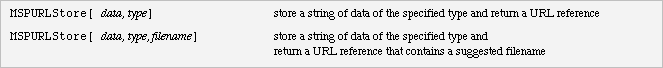 MSPURLStore stores a string of formatted data in the MSP servlet and returns a URL that can be used to retrieve the data. It is an extension of the mechanism for storing images. It can be used to hold input for some plug-in or applet in the client or it could be formatted into an img tag.