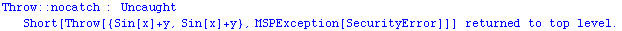Hold[Throw[{"Sin[x]+y", "Sin[x]+y"}, MSPException["SecurityError"]]]